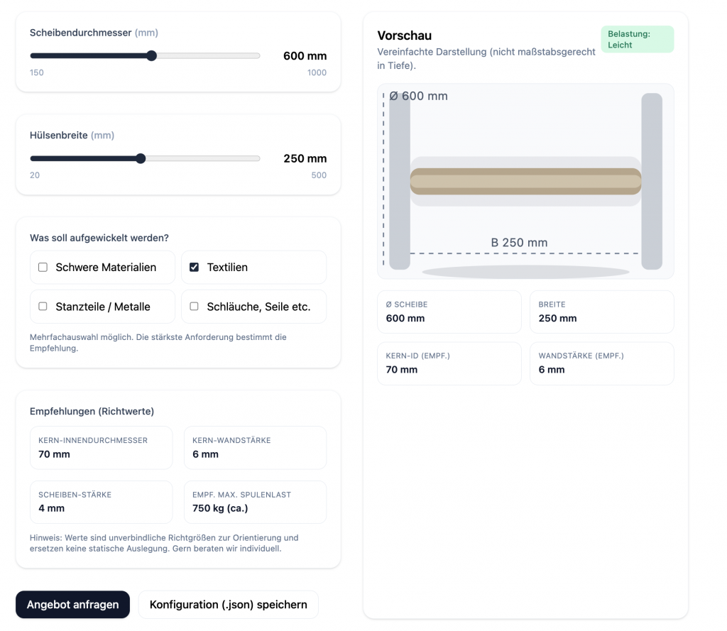 Unsere Produktfamilie reicht von stabilen Papp- und Kombispulen über zerlegbare Bausatzspulen bis zu anwendungs­optimierten Hülsen und Verbindern. Für technische Textilien, Bänder, Kabel, Stanzteile, Schläuche & Seile entwickeln wir Muster, die auf Ihrer Anlage bestehen, und führen sie zügig in die Serie.